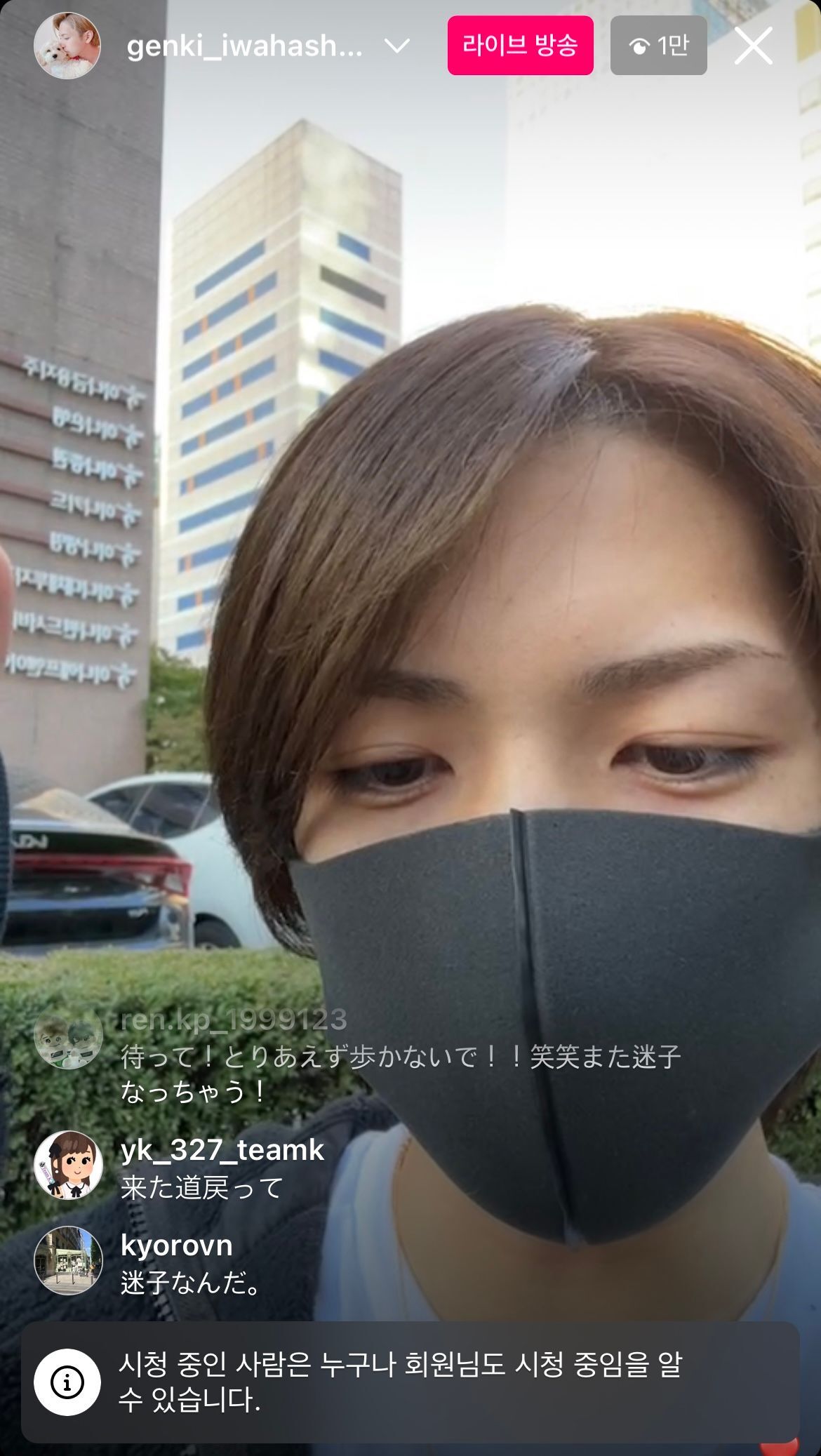 “韓国のスタバの店員さんに英語でアイスカフェラテオーツミルク変更して道尋ねるいわちカッケェ。。。 無事駅にたどり着きますように…😢🐰 #岩橋玄樹 #岩橋玄樹インスタライブ #いわ